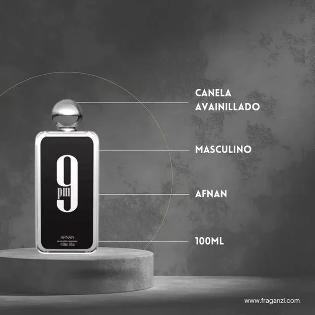 Inspirado ULTRAMALE. 9PM de AFNAN es fragancia masculina para un estilo de vida activo. • Notas de Salida Bergamota, Espliego, Canela y Manzana - En el corazón Lirio de los Valles y Flor de Naranjo - De Fondo Pachuli, Àmbar, vainilla y Haba Tonka