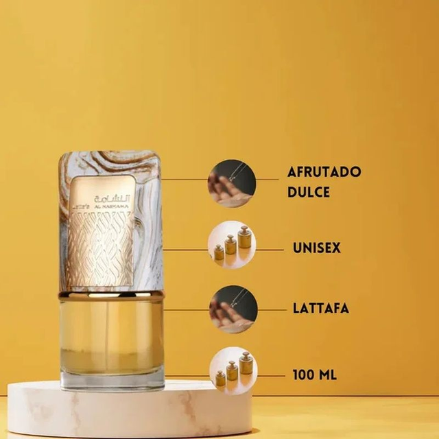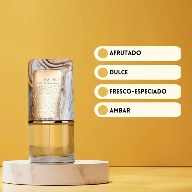 AL NASHAMA de Lattafa es una fragancia que recuerda a Paragon Inito. Perfume unisex diseñado para quienes buscan destacar con un aroma cómodo, elegante y memorable . Su equilibrio entre notas frescas, especiadas y cálidas lo convierte en un perfume versátil y distintivo, ideal para cualquier ocasión. • Notas de Salida Bergamota, Salvia, Pimienta Rosa - En el Corazón Ciruela, Jazmín Y Pimienta Negra De Fondo Cuero Saffiano, Ámbar, Pachulí y Musgo.