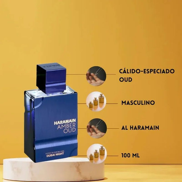 Inspirdo en ARABIANS TONKA de Montale. AL HARAMAIN AMBER OUD DUBAI NIGHT, es una fragancia intensa, lujosa y envolvente, pensada para destacar en noches elegantes. Su aroma profundo combina dulzura, calidez y un toque exótico que refleja el glamour de Dubái. • Notas de Salida Bergamota, Azafrán y Elemí - En el Corazón Agarwood , Rosa de Bulgaria y Lirio de los Valles - De Fondo Haba Tonka, Ambar, Almizcle Blanco y Musgo de Roble.