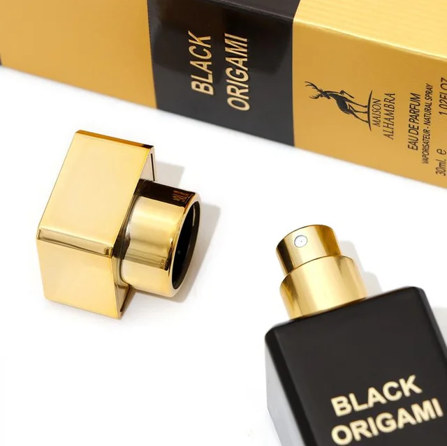 BLACK ORIGAMI de Maison Alhambra es una fragancia que envuelve en un aura de lujo. Ideal para la mujer que no teme destacar su aroma. • Notas de Salida Trufa, Gardenia, Grosella Negra, Ylang-Ylang, Jazmín, Bergamota, Mandarina, Limón de Amalfi - En el Corazón Oruideas, Especias, Gardenia, Notas Frutales, Ylang – Ylang, Jazmin y Loto - De Fondo Chocolate Mexicano, Pachulí, Vainilla, Incienso, Ambar, Sándalo, Vetiver, Almizcle Blanco.