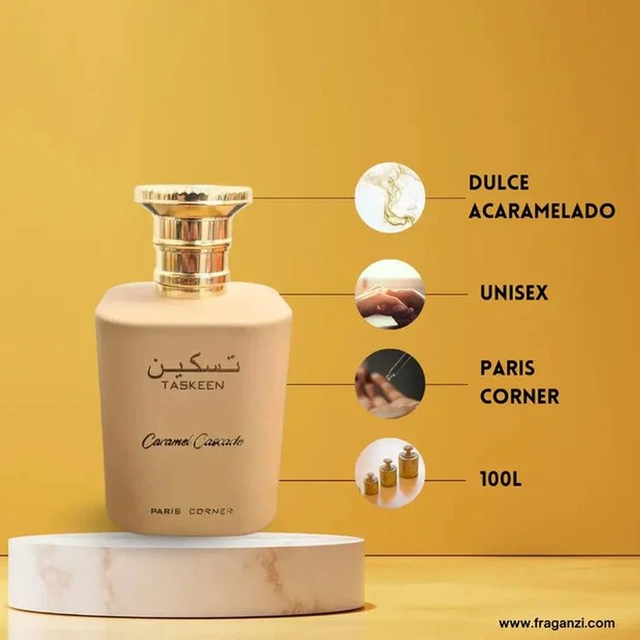 Inspira a Prada Candy Eau de Parfum. CARAMEL CASCADE de Paris Corner es una fragancia ulce y sofisticada que captura la esencia del caramelo derretido en su punto perfecto. Diseñada para quienes aman la calidez, la indulgencia y la sensualidad. • Notas de Salida Pera Caramelizada y Bergamota - En el Corazón Caramelo Líquido, Flor de Azahar y Almendra Tostada - De Fondo Vainilla de Madagascar, Haba Tonka y Ambar Cremoso.