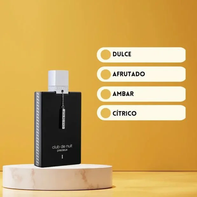 CLUB DE NUIT PRECIEUX de Armaf recuerda a Aventus Absolu Cree. Es fragancia lujosa y versátil ideal para quienes buscan destacar con un aroma elegante y duradero en cualquier ocasión. • Notas de Salida Piña, Limón, Caramelo, Pera, Bergamota, Pimienta Rosa y Pimienta negra - En el Corazón Musgo de Roble, Madera Blanca, Anís, Jazmín y Lirio de los Valles - De Fondo Ambroxan, Ámbar, Vainilla, Almizcle Blanco, Cuero, Cedro y Pachuli.