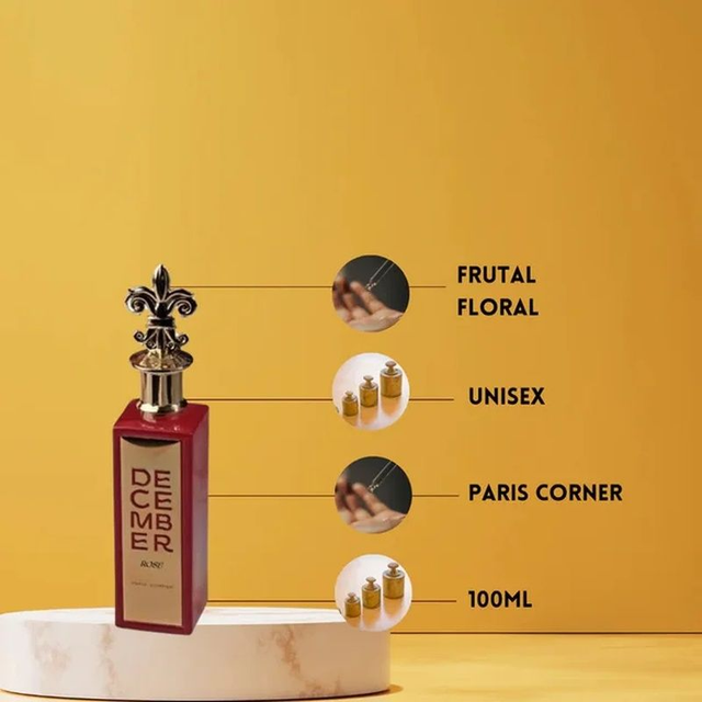 DECEMBER ROSE de París Corner es una fragancia femenina que captura la frescura y dulzura de las flores en un aroma equilibrado y limpio, perfecto para el uso diario. Este Eau de Parfum es ideal para mujeres que buscan una fragancia versátil y floral que acompañe cada momento. • Notas de Salida Naranja y Moras Azules – En el Corazón Rosa, Geranio y Magnolia – De Fondo Pachuli y Almizcle.