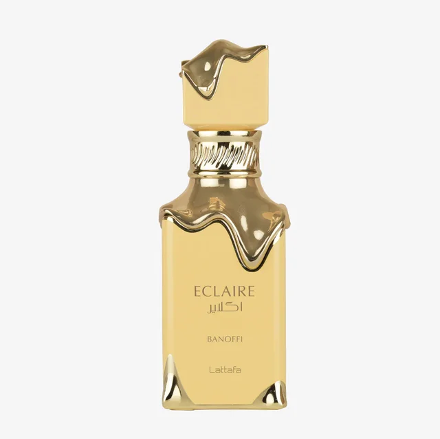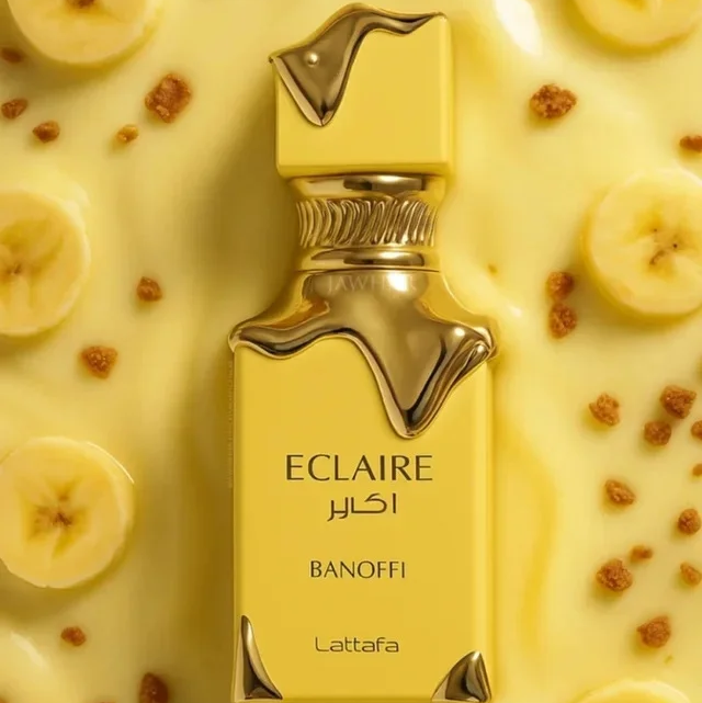 Eclaire Banoffi Lattafa es una exquisita fragancia que combina notas cremosas de caramelo, vainilla y banana con un toque dulce y cálido, evocando la dulzura irresistible del postre banoffee. • Notas de Salida Banana y Caramelo - En el Corazón Vainilla y Crema - De Fondo Almizcle y Madera ligera.