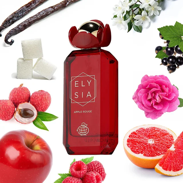 Inspira a Kayali Eden Juicy Apple. ELYSIA APPLE ROUGE es una fragancia vibrante, dulce y femenina que transmite alegría y frescura desde el primer momento. Tiene un aroma jugoso y adictivo. • Notas de Salida Manzana Roja, Lichi, Grosella Negra y Pomelo Rosado - En el Corazón Bayas Silvestres, Jazmín y rosa - De Fondo Vainilla, Azúcar, Almizcle, Ámbar y Musgo.