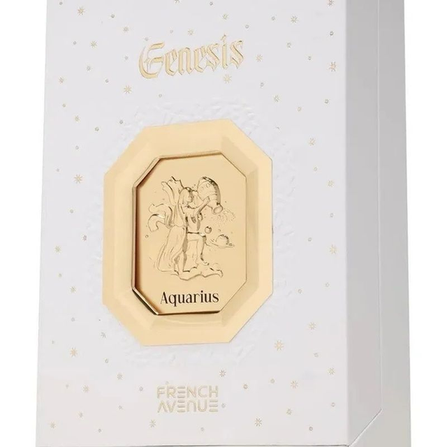 Inspirado en LOS SIGNOS DEL ZODIACO. GENESIS de AQUARIUS Está diseñada para ser un perfume unisex, fresco, audaz y moderno que busca representar la esencia del signo de Acuario. • Notas de Salida Algas Marinas y Pimienta - En el Corazón Ambar Gris, Abeto Balsamico - De Fondo Notas Amaderadas, Madera de Oud y Styrax.