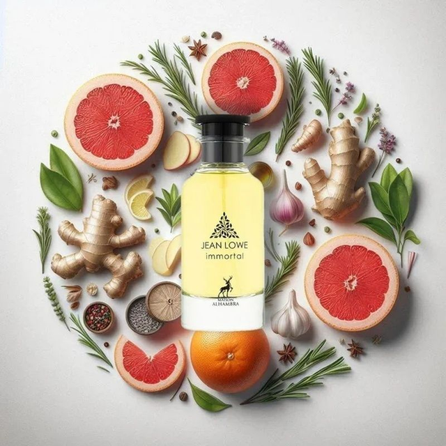 JEAN LOWE IMMORTEL de Maison Alhambra es una fragancia citrica creada para el hombre moderno que valora la sofistificación y la intensidad duradera. • Notas de Salida Toronja , Jengibre, Bergamota - En el Corazón Romero, Notas Acuáticas, Salvia y Geranio - De Fondo Ambroxan, Ámbar y Ládano.