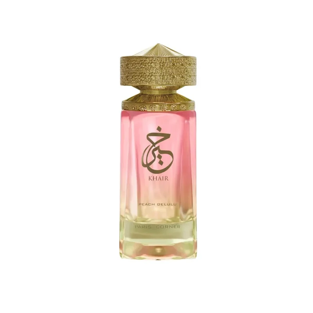 Inspirado en PEACH VELVET de Khadlaj perfumes. KHAIR DELULU de Paris Corner, es una fragancia divertida, atrevida y moderna. Transmite una vibra jugosa y juvenil con un toque dulce y envolvente. • Notas de Salida Melocotón, Nectarina y Guayaba - En el Corazón Cardamomo y Jengibre - De Fondo Caramelo, Almizcle y Madera seca.