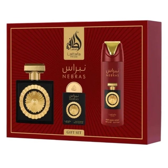 Inspirado en EILISH de BILLIE EILISH. NEBRAS GIFT SET de Lattafa es intensa y envolvente que combina notas dulces y afrutadas con un fondo gourmand cálido. Complementada con una combinación de aromas ideal para cualquier persona. • Notas de Salida Frutos Rojos y Mandarina - En el Corazón Vainilla, Cacao y Rosa - De Fondo Azúcar, Haba tonka, Ámbar y Almizcle.