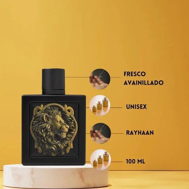 Inspira Jean Paul Gaultier Ultra Male. RAYHAAN LION, Es una fragancia que irradia presencia y seguridad, ideal para el hombre decidido. Se abre con fuerza, pasa por una fase elegante y se asienta con un final inolvidable. • Notas de Salida Pera, Lavanda, Menta y Bergamota - En el Corazón Canela, Salvia Esclarea (Clary Sage) y comino - De Fondo Vainilla, Àmbar, Cedro, Pachulí.
