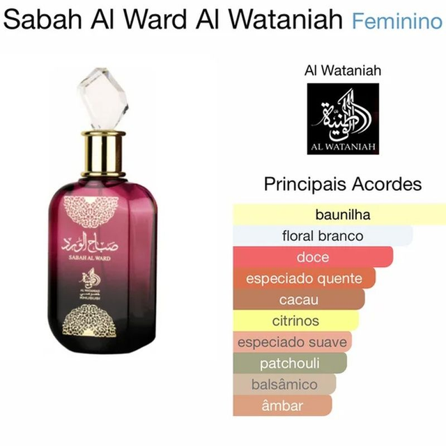 SABAH AL WARD de Lattafa es una fragancia ideal para mujeres que buscan una esencia sofisticada, elegante y femenina combinando notas cálidas y sensuales con un toque de frescura. • Notas de Salida Pimienta Rosa y Mandarina - En el Corazón Cacao, Flor de Azahar del Naranjo y Jazmín - De Fondo Vainilla, Haba Tonka y Pachuli.