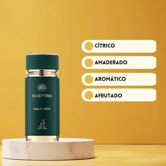 Inspirado en GOD OF FIRE de Stéphane Humber. SCEPTRE MALACHITE es un perfume tropical, fresco y vibrante. Su aroma mezcla cítricos, flores y un fondo cálido. • Notas de Salida Mandarina verde, Bergamota, Grosella negra, Jengibre - En el Corazón Jazmín, Lavanda, Pimienta rosa - De Fondo Ámbar, Almizcle, Vetiver, Madera.