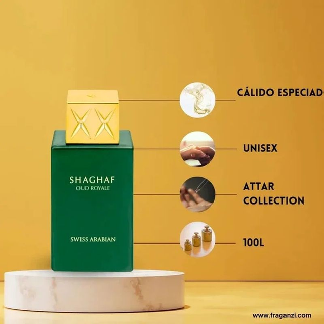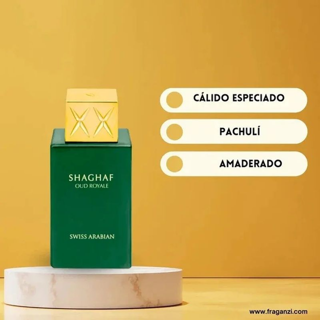 Inspirado en Initio Oud For Greatness. SHAGHAF OUD ROYALE de Swiss Arabian, Es Una fragancia majestuosa que evoca elegancia y presencia. Combinando un carácter distintivo con sofisticación que deja huella. • Notas de Salida Azafrán y Lavanda - En el Corazón Oud y Nuez Moscada - De Fondo Almizcle y Pachulí.