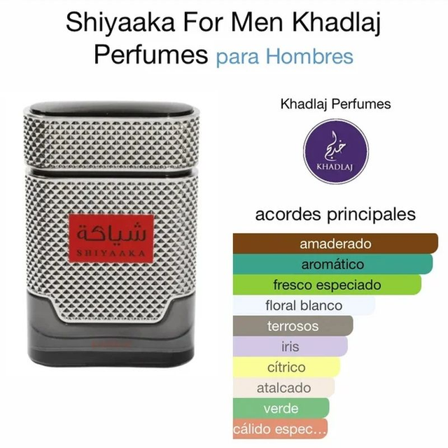 KHADLAJ SHIYAAKA SILVER, es una fragancia que abraza el encanto y que combina el frescor y la elegancia con notas profundas y cálidas, creando una experiencia inolvidable para cualquier ocasión. • Notas de Salida Romero, Petitgrain y Pimienta - En el Corazón Neroli, Lirio y Jazmín - De Fondo Cedro, Vetiver y Pachuli.