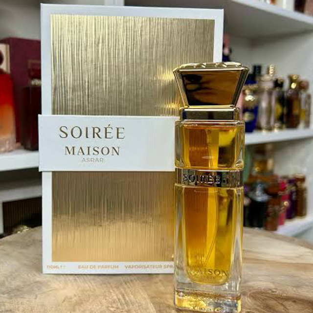 Inspira a Eilish No1 de Billie Eilish. SOIRÈE MAISON ASRA es una fragancia femenina envolvente, cálida y sofisticada. Su estilo dulce y cremoso la hace ideal para noches especiales o climas frescos. Transmite elegancia con un aire acogedor, sin llegar a ser empalagosa. • Notas de Salida Vainilla, Tófe, Praliné, Manzana y Ciruela - En el Corazón Flores Blancas, Ylang-Ylang, Heliotropo y Lavanda- De Fondo Vainilla, Caramelo, Àmbar Gris y Notas Amaderadas.