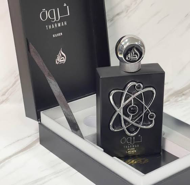 THARWAH SILVER de Lattafa es una fragancia que combina frescura, longevidad y proyección. Diseñada para hombres y mujeres que buscan una experiencia olfativa única, este aroma evoca la frescura de un paseo por la naturaleza después de la lluvia manteniéndote revitalizado durante todo el dia. • Notas de Salida Menta y Bergamota - En el Corazón Salvia y Lavanda - De Fondo Madera de Cedro, Almizcle y Vetiver.